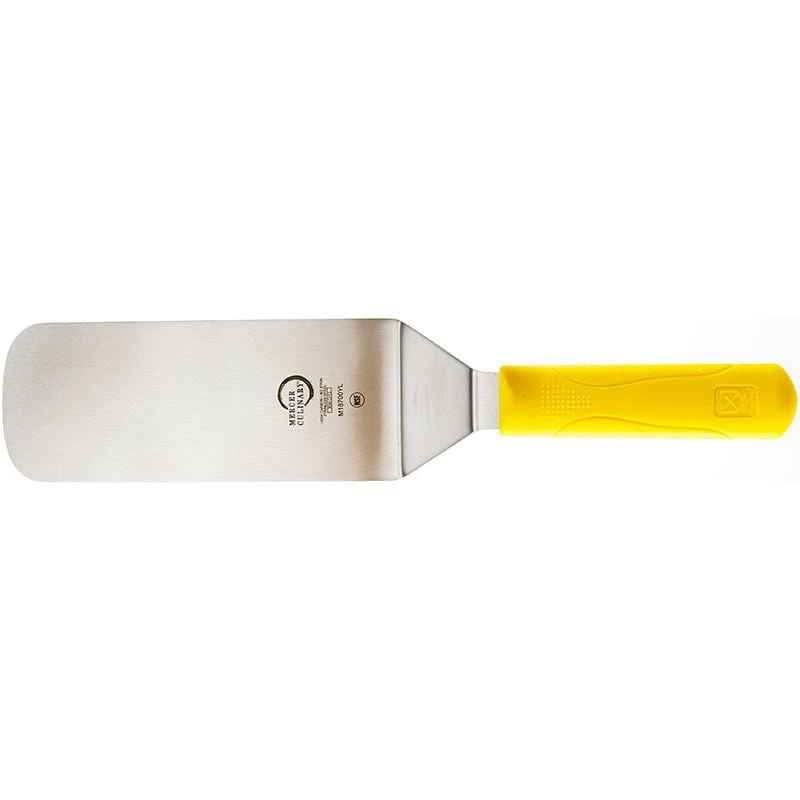 This Mercer Culinary® Millennia® Turner has an 8″ x 3″ blade and is great for grill work in commercial kitchens. It features a molded yellow handle which provides a sure grip, and helps assist with color-coordinated food safety practices.